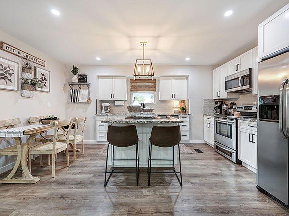 Entering from a cozy front deck/porch, a generous living room with tons of natural light, flows directly into a wide open kitchen updated with newer cabinetry, tile, flooring and stainless steel appliances. This space is perfect for large or small gatherings with plenty of space for everyone.