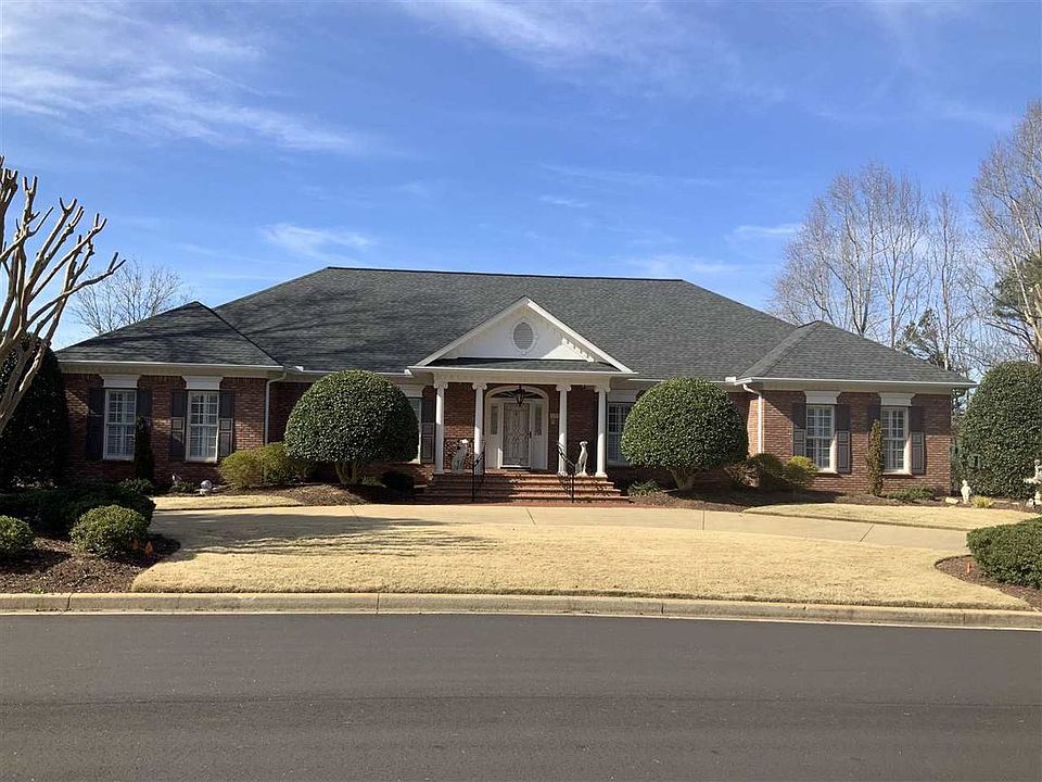 Spacious 5 bedroom, 4 bath brick home with basement, designed and built by engineer/owner with thoughtful detail and craftsmanship. Located on the 12th Fairway at River Falls Golf Course. Plenty of parking space with circular driveway in front, plus access to side entry 3 car garage. The main level has Foyer with double trey ceiling, Formal Living and Dining rooms, Big Laundry Room, bright Kitchen w/Breakfast/ Keeping room with fireplace, Great Room w/fireplace, Sunroom, Master Suite and 3 additional guest rooms and a total of 3 full baths. The master suite has a double trey ceiling, master bath has double vanities, a big walk-in closet, Whirlpool tub and sep.shower. It also has access to the Sunroom that runs along the back of the house and has spectacular views of the grounds and golf course. The basement level has a huge rec room with fireplace and wet bar, tons of storage space and workshop area, a 5th bedroom and full bath. There is also a screened porch on the basement level, also with great views. There is a tiered deck system and water features in the backyard. This home also includes the lot next door (410 Old South) for a total of 1.31 acres, beautifully landscaped.