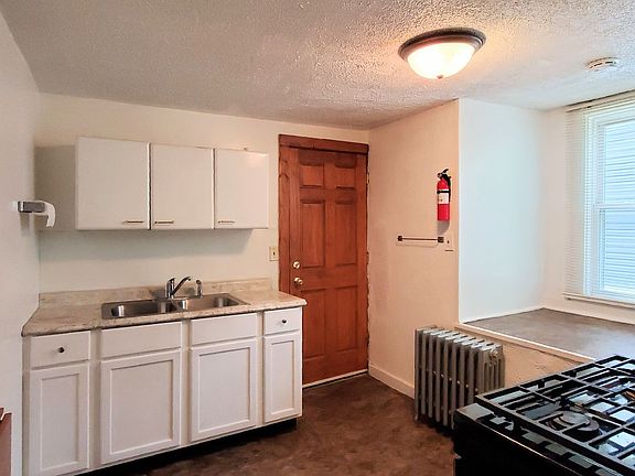 2nd floor studio apartment. Stove and fridge. 1 window AC unit provided by owner. Street parking. Utility fee $150 per month.
