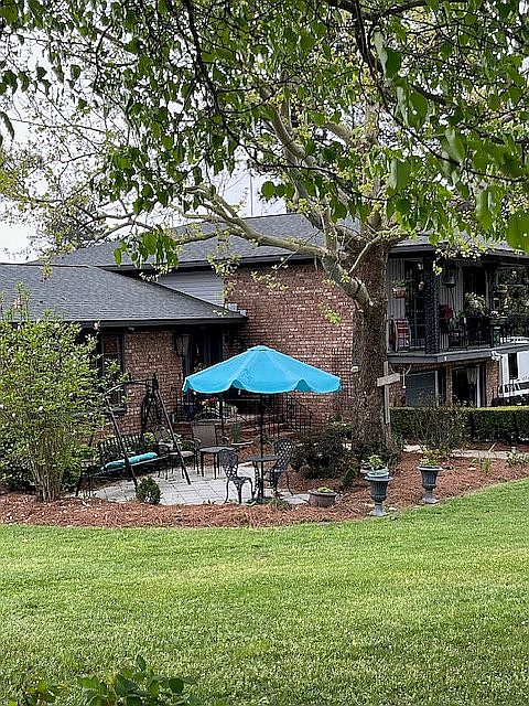 A quaint tri -level with New Orleans front balcony over garage great for morning coffee or watching sunset at the end of day. The lower level has 2 car garage along with large family and covered patio and 1/2 bath. 2 nd level is the entry along with updated kitchen, granite countertops, top to bottom cabinets, porcelain floors, downdraft gas stove, countertop eating area. Next is dining room and living room with hardwood floors and large picture window. 3nd floor has a master with walk in bath and 2 quest bedrooms with access to balcony and with a laundry and bathroom between them and all hardwood floors though out. Double insulated windows with brick walls and vinyl trim. Roof 3 months old and new wood fenced backyard.