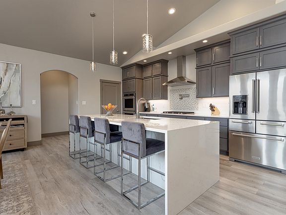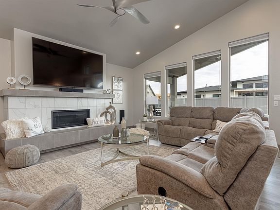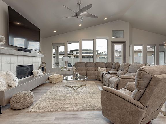 Beautifully crafted custom built ranch style home features 4 bedrooms, 2 1/2 bathrooms and 3 car garage. Among its most desired features are the breathtaking monument views from the numerous large windows. Open concept split bedroom floorplan greets you with vaulted ceilings and beautiful gas fireplace. Kitchen boasts large waterfall island, double oven and walk in pantry. Master bedroom is completed with accent wall before you enter the stunning master bathroom which features under cabinet lighting, built in vanity, huge walk in shower and free standing bathtub. Abundant storage throughout the home including extra cabinets and closet in laundry room. Step outside and be wowed by the landscaping which includes unique water feature. Patio is wired and set up for a television. Sound system is installed to be heard throughout the home as well as on the patio and in the garage. Hot tub stays! Added bonus of poured concrete pads for fire pit and shed.