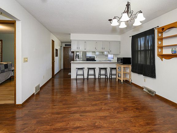 Welcome to this well-maintained ranch-style home offering comfort, updates, and plenty of space inside and out. The main level features updated flooring throughout, two spacious bedrooms, and a beautifully remodeled full bathroom. Conveniently located just off the garage entry is a half bath and a laundry room for everyday ease. The kitchen features all new appliances. Downstairs, the partially finished basement adds great additional living space, complete with two more bedrooms, a cozy family room, and a large 3/4 bathroom featuring a stunning tile shower. The home also includes a nearly new furnace installed just a few years ago, ensuring efficiency and peace of mind. Outside, enjoy the large yard—perfect for outdoor gatherings or gardening—and a storage shed for extra convenience. The attached two-stall garage provides plenty of parking and storage. This home combines updates, space, and small-town charm—ready for you to make it your own!
