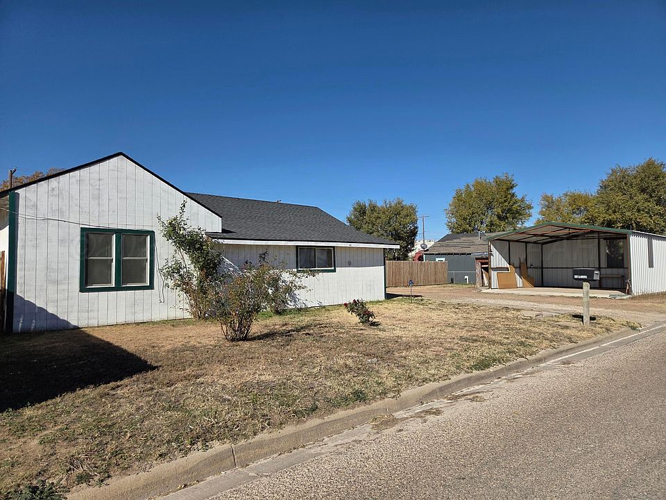 NEW Double Carport on Concrete Slab (2025), NEW Roof (Fall 2023), NEW Wood Fence (Fall 2023), NEW Exterior Siding (Fall 2023), NEW Windows (Fall 2023), and NEW Hardwood Flooring (2025). NO CARPET! NEW drip pan under HWH (2025), NEW plumbing pipe lines to HWH (2025), and NEW washer hookup connection (2025). Extra front room for crafts, play, or office. Two bathrooms with walk-in showers. Fenced backyard features 2 Shops PLUS a Storage Shed in front. Both shops have electrical and one shop has central heat. Fence opens for RV or vehicle parking. This home sits on 2 Lots!