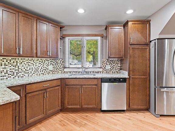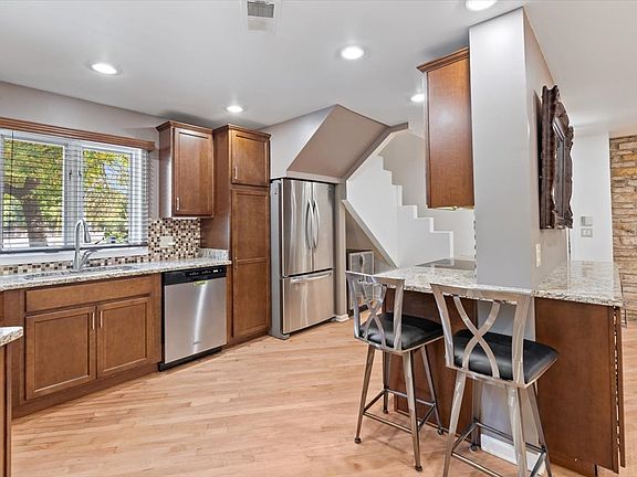 Experience life in Park Ridge-one of the most sought-after suburbs of Chicago, known for its charm, top-rated schools, and unbeatable location-directly across from MAINE SOUTH HIGH SCHOOL and walking distance to WASHINGTON ELEMENTARY, LINCOLN JR. HIGH and the Community Center. This 3-bed, 2.1-bath PLUS DEN END UNIT townhome offers 2,133 sq ft of elevated living with a vaulted ceilings, skylights and a natural stone gas burning fireplace. The updated kitchen features stainless steel appliances, gas stove, microwave, garbage disposal, plenty of modern cabinetry, and a nest thermostat-flow seamlessly into the dining and living areas with a granite bar space that adds elegance for entertaining. Upstairs, all bedrooms are thoughtfully placed, including a primary bedroom with a WALK-IN CLOSET, ensuite bathroom, and French doors opening to a balcony overlooking a skylit family room with a lofted home OFFICE/DEN area that offers the perfect remote work setup. Enjoy a backyard patio perfect for grilling with direct access to the POOL, plus an attached garage and additional outdoor parking. Just minutes from UPTOWN PARK RIDGE, major grocery stores, O'Hare Airport, and under twenty miles to downtown Chicago. With top-rated schools, parks, and a vibrant downtown, this townhome delivers the perfect blend of suburban serenity and city convenience. Cats only.