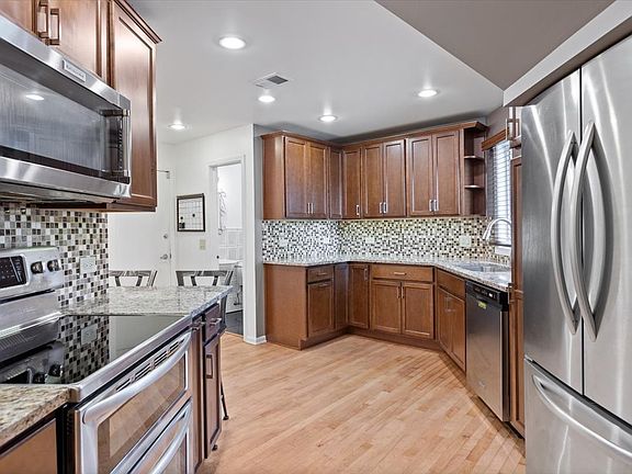 Granite bar spaceBackyard patioSkylit family roomUpdated kitchenVaulted ceilingsFrench doorsStainless steel appliances
