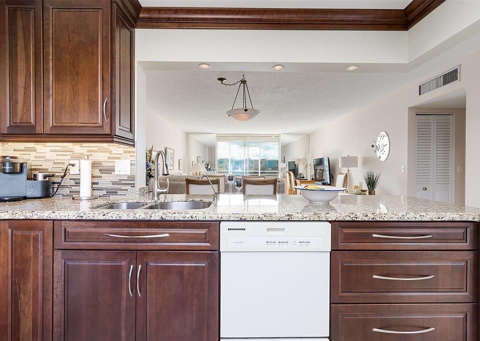 Awesome 2/2 overlooking pool and Lake with Fountain. Nice Open Kitchen with Granite, Dual Sinks, Pull Out Faucet, Recessed Lighting, Self Clean Oven/Range. New Guest Bathroom and Partially upgraded Master Bathroom. Fully Furnished / Turnkey. Impact Windows in Back (Master Bedroom). Accordion Shutters protect the Patio Doors. Sliding Doors in front of screens on Patio permit to A/C cool the balcony if needed. Foreign Seller. Seller would like to close soon and deliver unit by April 15th, 2026. Seller will assume costs of Maintenance and Taxes through 2026. Seller will also assume the $4000 due over the next 4 years as a Special Assessment. Near Airport, Shops, Casino, Restaurants, Beach & Banks. 55=+ community. Rentals permitted after 2 years of ownership (Minimum 3 months)