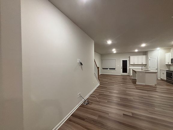 Recessed lightingLots of natural lightHardwood flooringOpen floor planKitchen islandGranite countertopsLaminate flooring