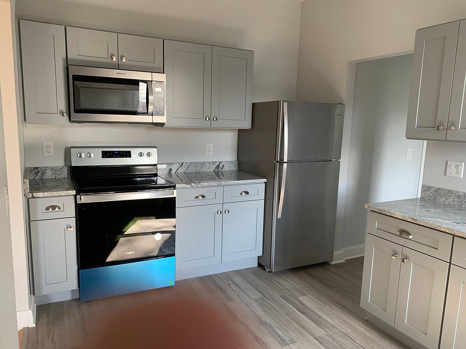 Completely brand new renovation - be the first to live in this new space. 3rd floor apartment in beautiful Victorian Mansion. Heat and Hot Water included. Brand new kitchen cabinets and stainless appliances including microwave. Brand new granite countertops, carpet and vinyl plank flooring. Brand new bathroom with tile shower. Plumbing and electric updated. Coin op laundry in basement. Off street parking. Large Yard. Prefer no pets, would consider a cat but absolutely no dogs. TEXT for appointment NO PHONECALLS PLEASE. Let's meet, you need to see the apartment and I need to meet you before either of us knows if this is a good fit. No application fees.