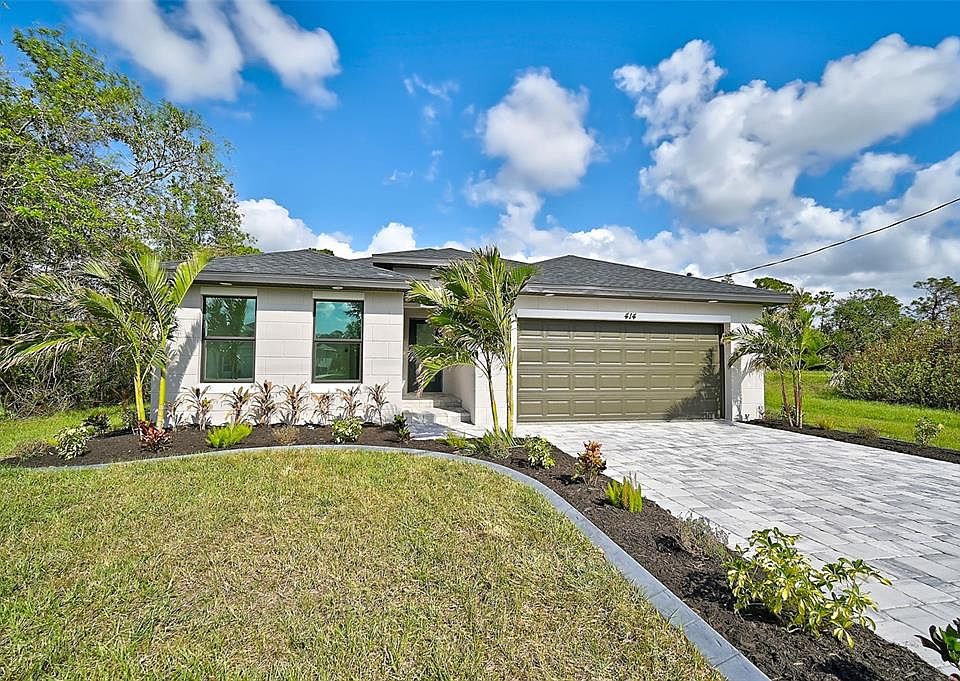 Welcome to Rotonda Heights! NO FLOOD ZONE! This new construction four bedroom two bath pool home is a testament to modern comfort and style. The exterior façade boasts contemporary architectural elements, featuring clean lines, and a charming entryway that sets the tone for what lies within. Upon entering, you are welcomed to into a bright and airy foyer that sets the stage for the rest of the home. The open concept design flows effortlessly from room to room, creating an ideal space for both entertaining and every day living. Complete with impact windows and a washer & dryer. The gourmet kitchen serves as the heart of the home, offering ample counter space, modern appliances, and stylish cabinetry that combines both beauty and practicality. Adjacent to the kitchen, the spacious living area adorned with crown molding and tray ceilings, provides the perfect setting for relaxation and socializing. The luxurious master suite, complete with walk-in closets, and spa-like bathroom provides a private retreat where you can unwind and rejuvenate after a long day. The additional three bedrooms and bath offer plenty of space for family members or guests. Step outside the living area onto your large covered lanai that leads to your sparkling HEATED swimming pool & spa providing the perfect place for entertaining and relaxing and is equipped with an outdoor shower and plumbed for an outdoor kitchen. This modern design, quality craftsmanship, and attention to detail offers a lifestyle of luxury and comfort that is truly unparalleled. Conveniently located to downtown Wellen Park in a short drive to Manasota Key in Boca Grande.