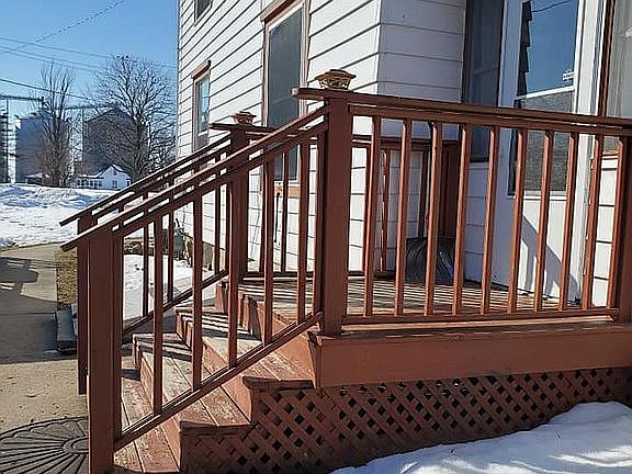 This spacious 2 story cozy home has an inviting Large 2 car garage with a additional 1 car garage for extra storage. Features included Huge yard with shed perfect for storing lawn upkeep equipment and large dog pen for pet lovers, spacious living room has newer double pained easy to clean windows ONLY 5 years old! Very good size kitchen with attached island bar and off to the side large dinning room area. Spacious master bedroom located upstairs which has a attic for more storage, Upstairs has 1/2 bath with 4 bedrooms, downstairs bathroom has an add on room for additional bathroom storage. The bathroom itself has cabinets along with jetted tub, semi finished basement with laundry hook ups for both electric and gas, brand new water heater and central air unit included. Also enclosed breeze way off rear door.