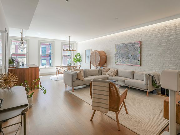 *Welcome to the Soho dream- Apartment 3S at 414 West Broadway* A keyed elevator opens directly into the inviting living room of this floor-through loft. Four wood-framed windows stretch across a sweeping tree-line and a beautifully textured view extends a warm "welcome home." The West Broadway facing living and dining areas enjoy the best of Soho's highly sought-after and distinguished cast-iron views, offering a best-in-class combination of both landscaping and iconic architecture. The bright, windowed kitchen offers an incredibly unique perspective- perched just atop the tree-line outside. Thoughtfully appointed and offering Bosch appliances, the space boasts ample storage in both upper and lower custom millwork and cabinetry. Supplemental lighting offers the ability to illuminate every corner of extensive countertop space and integrated appliances allow for clean visual streamlines throughout. A bar top overhang allows for an eat-in kitchen and a wonderful, complementary area for entertaining. Enjoy the experience of cooking and dining while also enjoying Soho's most quintessential views. Dividing the front of the loft from the bedroom wing is a long-stretching hallway that offers both a designated home office area and separate, additional common storage. An oversized, stacked Electrolux washer/dryer system finds home in a closet at the end of the hall, just beside a secondary full bathroom with tub. Two oversized bedrooms comprise the rear of the loft, each offering two impressive windows and closets. The primary suite enjoys an especially ample amount of closet space that separates the bedroom from the primary bath. In the bath, a double vanity with closed-drawer storage stretches along the wall opposite a walk-in shower. Wall-mounted sconces augment both functionality and ambiance. The building offers Butterfly MX smart, keyless access control at the front door. Famed for its stretch of art galleries at street level, West Broadway is a residential dream. With the ability to depart the building via car heading either North or South, (along with the added benefit of geographic positioning just below Houston Street with West-bound and East-bound mobility), the location is also a commuter, traveler, or pied-a-terre dream. West Broadway needs no introduction- speaking entirely for itself with an array of world-class shopping and dining. Retail neighbors to the Residences at 414 West Broadway are Cipriani, Ralph Lauren, Laduree, Gucci, Aesop, Reiss, Jonathan Adler, and more. Showing by private appointment. Please note that images may be virtually edited/ staged or stock images. Virtual editing/staging is subject to errors, omissions and inaccuracies of scale. Interested parties should always rely on their own inquiries.