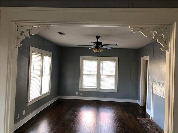 This 2 bedroom charming home is spectacular, with its original wood floors, vintage glass door knobs, 5 paneled wood shaker doors, Butler door between kitchen and dining room, and wainscoting in kitchen. Beautifully remodeled bathroom with fresh paint, new round mirror, new vanity lights, new flooring and new shower head and shower curtain. Ceiling fans in every room. Faux fireplace mantel in living room to decorate year around and for Christmas and other special occasions. Original drop down secretary desk mounted in the wall of shelves in living room is unique. Building in back could possibly be restored to an apartment or just used as a storage room, man cave, etc.