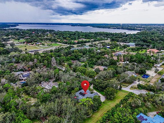 HUGE PRICE IMPROVEMENT!!!!!Welcome to this stunning Marc Rutenberg residential designed home offering the perfect blend of space, comfort, elegance & privacy. Featuring 5 spacious bedrooms, and 3 full bathrooms, a dedicated office, and a game room space for fun and Sunday sports. The primary suite is a true retreat, featuring an expansive bathroom with a luxurious soaking tub, oversized walk-in shower, and dual vanities. Through the bathroom, you'll find an extremely spacious master closet offering an abundance of storage, as well as an additional separate walk-in closet-perfectly designed for ones spouse. On the opposite side of the home, the thoughtful split bedroom layout provides two bedrooms and a bathroom, while another two bedrooms share a full bathroom nearby. From this wing, a staircase leads to the upstairs game room. This home is designed to accommodate both family living and entertaining with ease. The heart of the home offers two inviting living rooms and a kitchen that opens to serene views of the sparkling solar heated salt water pool and spa, creating a seamless indoor-outdoor lifestyle. The pool solar panels are fully paid off. This home is nestled on 2 or more acres of beautifully manicured, mature landscaping at the almost end of a quiet dead-end road Cul-De-Sac, the setting provides unmatched privacy, charm, and feel of resort style living. Did I mention NO HOA? Every detail, from the expansive grounds to the resort-inspired outdoor space, makes this home a true sanctuary while you practice your putting on the green out back. This home has been thoughtfully updated with valuable features, including a whole-home Generac generator(2019), New shingle roof(2021), and a tankless water heater(2019). Additionally enhancements include a water softener(2025), hurricane-anchored pool cage(2021), and replacement of one of the two 5-ton HVAC units(2025). Enjoy a whole-home integrated speaker system with seamless indoor and outdoor audio-perfect for entertaining. With many more upgrades detailed in the attachments, this property has been meticulously maintained to provide comfort, efficiency, and peace of mind for years to come.