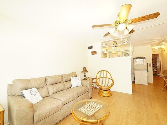 GROUND FLOOR condominium at the east end of the condominium complex features NEWER ELECTRIAL PANEL, WASHER/DRYER stackable in kitchen and additional dryer in Florida room, WALK-IN Shower in bathroom with NEWER wall tiles and shower tiles. laminate flooring in living room, kitchen, and bedroom, CENTRAL AC and heating, and sitting area on both your FRONT PORCH and the BACK OPEN PATIO. This MID-CORNER condo is located next to breezeway where mailboxes are, and the assigned parking space is steps away from this condo. Being the LARGER STYLE 1-bedroom condo, this unit starches from the front to the back of the building. Not facing another building, this building offers a little more privacy than buildings on some other streets. TENTING was completed in JANUARY OF 2025, and the NEW ROOF is scheduled to be installed at the end of 2025. There is no land lease or land lease fee; just one fee to the association and that monthly fee to the association includes CABLE, INTERNET, Wi-fi, water, sewer, trash removal, maintenance of the exterior common elements, and insurance of the building exterior while buyer is advised to get insurance for the interior. The building is in X zone that is presently NON-EVACTUATION zone and does not require flood Insurance to be paid by the association. This PET-FRIENDLY complex located in Kenneth City is within the north-west part of St. Petersburg. Approximately 7 miles away from each Madeira Beach and St Pete Beach, this complex is located about 4 blocks east from Clearview Oaks Management Condominium Association's shuffleboard court and a clubhouse with a library, a pool-table, and a piano.