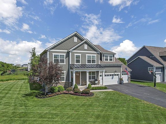 Stunning 2019-built luxury home with resort-style outdoor living space and over 5,700 SQFT of living area! The outdoor oasis features a heated saltwater pool, open air pavilion with built-in gas fireplace, outdoor kitchen with built-in BLAZE professional appliances & granite countertops, sunk-in hot tub, plus an 800 sqft natural stone paver patio. Inside, the home boasts a double-sided fireplace between the main living room and the hearth room, a chef's kitchen with high-end appliances, and smart home features including whole-home security, wifi enabled devices, and a whole-home humidifier. The 3 car garage is heated with epoxy flooring, and side mounted openers for ample ceiling height. The finished lower level is perfect for game days and group entertainment, featuring a custom theater room and a wet bar with a full refrigerator. Egress window allows for the option to convert part of the basement into a 5th bedroom, with a full bath already in place. Located in the highly desired Olentangy School district, this one-of-a-kind home combines luxury, entertainment, and lifestyle! SEE FULL LIST OF FEATURES IN THE DOCUMENTS.