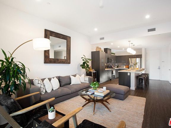Don't miss your chance at this beautiful, light-filled condo unit! Spacious & modern, this unit features a large balcony with unblocked views. The unit is filled with great natural light, especially in the mornings. The kitchen features stainless steel Kitchenaid appliances, including a stove, side-by-side 2 door refrigerator, oven, microwave and dishwasher. The bedrooms both have large walk-in closets, and the Master Bedroom features an en-suite 3/4 bath with custom-tiled walk-in shower. Central AC and Heat keeps you comfortable year-round. The HOA Community facilities include concierge, furnished lobby, comfortable coffee lounge, gym, community recreation room, pool, and a courtyard with modern patio furniture and BBQ grills. Very walkable neighborhood with close proximity to shopping, grocery, and food. Tenant pays all utilities; Owner pays HOA. No smoking. 2 covered parking spots. Will consider cats, and dogs up to 25 lbs., with additional deposit and some restrictions. PLEASE NOTE: Photos are staged; unit is not furnished. Owner pays HOA. Tenant pays utilities.
