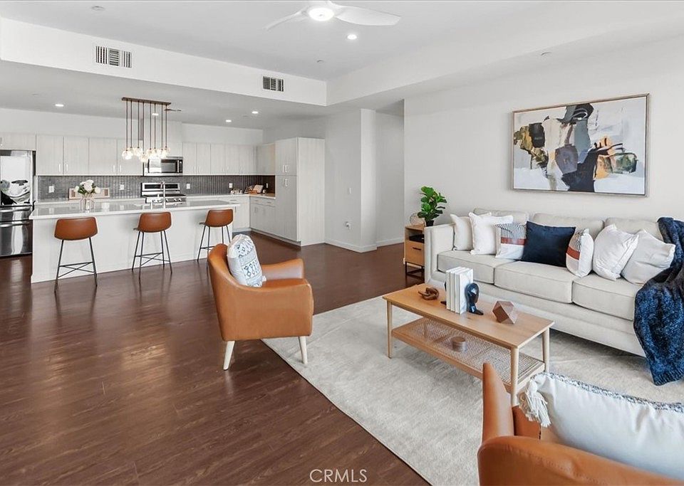 Welcome to this stunning 2-bed, den, 2.5-bath top-floor end-unit condo offering luxury, convenience, and impeccable style. High ceilings and expansive windows fill the space with natural light, creating a serene environment. The open floorplan connects a chef's kitchen with sleek cabinetry, quartz counters, a spacious island, and top-of-the-line appliances to a comfortable living room. The expansive deck boasts south-east-facing city skyline views, perfect for morning coffee or entertaining! X67 Lofts offers amenities like a pool, gym, club room, dog run, gated parking, BBQ areas, coffee bar, and modern lounge spaces. Located in Marina Del Rey, enjoy fine dining, shopping, entertainment, beaches, the marina, and easy freeway access. Elevate your lifestyle in one of Marina Del Rey's most coveted addresses.