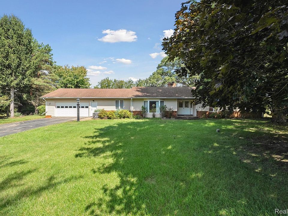 Welcome to this sprawling ranch home nestled on 1.57 acres in a quiet, serene neighborhood surrounded by large mature trees as well as many fruit trees. This inviting residence offers 3 bedrooms and 2 full baths, thoughtfully designed for comfort and convenience. Step inside to a nice sized foyer and venture into a sunny living room, a formal dining room for entertaining and a spacious kitchen with a cozy breakfast nook, perfect for casual meals. The family room features a charming brick fireplace and parquet flooring, creating a warm gathering space. The primary bedroom includes a private bath with a therapeutic tub, while two additional bedrooms share a full bath that's centrally located. Practical touches include first-floor laundry and a large basement, ideal for finishing into extra living space and ample storage. A 2-car attached garage adds everyday convenience. Enjoy the outdoors from the back deck, perfect for barbecues with family and friends, while taking in the natural beauty of the property and the many views of wildlife. This property blends comfort, space, and nature—ready to welcome you home.