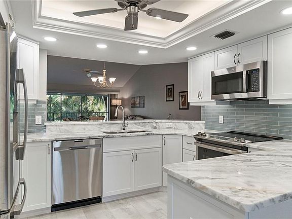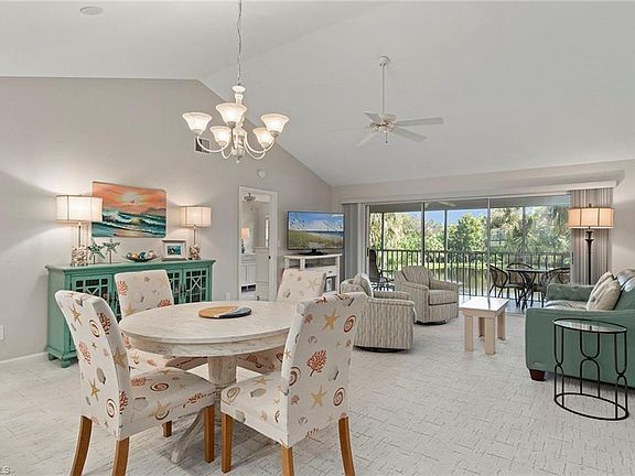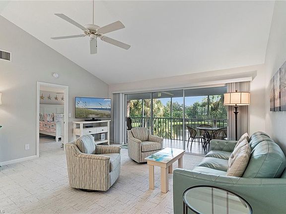 Welcome to this beautifully updated 2-bedroom, 2-bath residence in the desirable Sandpiper neighborhood of Bonita Bay. This second-floor condominium combines modern upgrades with serene lake and nature views, creating the perfect blend of comfort and style. Step inside to discover an inviting open floor plan highlighted by modern tile flooring, plush carpeting, and abundant natural light. The fully remodeled kitchen (2022) features white shaker cabinets with soft-close drawers, granite countertops, stainless steel appliances, under-cabinet lighting, a breakfast bar, and an eat-in nook beneath a tray ceiling with recessed lighting—ideal for casual dining or entertaining. The spacious primary suite offers peaceful pond views and direct access to the screened lanai which is complete with new no-see-um screens. The remodeled ensuite bath showcases dual sinks with granite countertops, white soft-close cabinetry, walk-in tile shower with multiple showerheads, and a large walk-in closet. The separate guest suite and second bath are equally impressive, providing comfort and privacy for visitors. Enjoy tranquil mornings and colorful sunrises from the lanai, framed by lush trees, manicured landscaping, and a sparkling pond—offering a private and picturesque backdrop with no neighboring residences in view. Additional highlights include 2023 A/C, 2023 new condominium roof, covered carport parking, outdoor storage, and ample guest parking, all in a convenient location, just two buildings down from the community pool and tennis courts. Residents of Bonita Bay also enjoy access to a private beach park on the Gulf, scenic walking and biking trails, multiple parks, and a full-service marina—with optional club membership for world-class golf, dining, fitness, and spa amenities. Experience the peaceful charm and exceptional value of Lake Forest living.