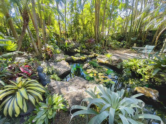 Imagine living in this exotic Coconut Grove wonderland, with dozens of towering palms, Majestic oaks, and bamboo. The property features a natural-style pond and waterfall surrounded by a lush, colorful tropical garden. Imagine sipping your morning coffee or entertaining dinner guests within this stunning tropical paradise! Conveniently located off main arteries, the low-key street and neighborhood are dense with durable oaks and other tropical trees that make Coconut Grove one of the most unique and desirable locations in South Florida. Priced for the land value, the property includes an artist/designer's small two-bedroom, one-bath home that may be of use until your new dream home construction begins... or use the existing home as a basis for expansion. This 60'x140' property is just over a mile from the heart of quaint downtown Coconut Grove, CocoWalk, Peacock Park, and more, and just a half-mile from Coral Gables' beautiful Merrick Place and Coral Gables High School. This unique property is among the highest elevations in Miami-Dade County outside of the flood zone.