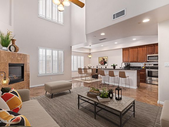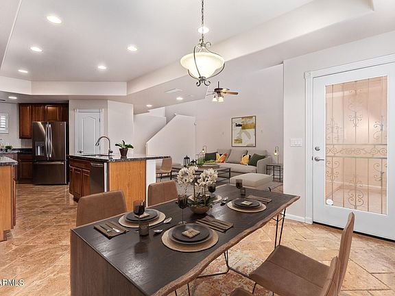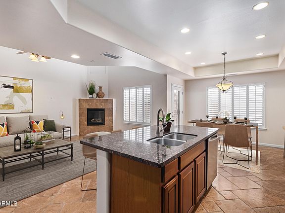 With fresh paint & new carpet, this townhome is priced to move! Located in a quaint & quiet complex w/only 8 units. offering that single family feel without the maintenance. End unit, 3 beds, 2.5 baths & attached 2 car garage. Open floor plan w/tile flooring, gas fireplace, newer AC, shutters & separate laundry room w/sink. The kitchen has a plethora of cabinets, granite counters, large island, stainless appliances & pantry. Upstairs you'll find a HUGE primary bedroom w/large walk in closet & ginormous shower w/2 shower heads! Down the hall you'll find 2 more bedrooms, both w/walk in closets & a full bathroom. 1/2 bath on main floor. Plenty of storage on both levels. Private patio w/common area access. 70 Walk Score! Conveniently close to all Phoenix has to offer. Great roomie house!