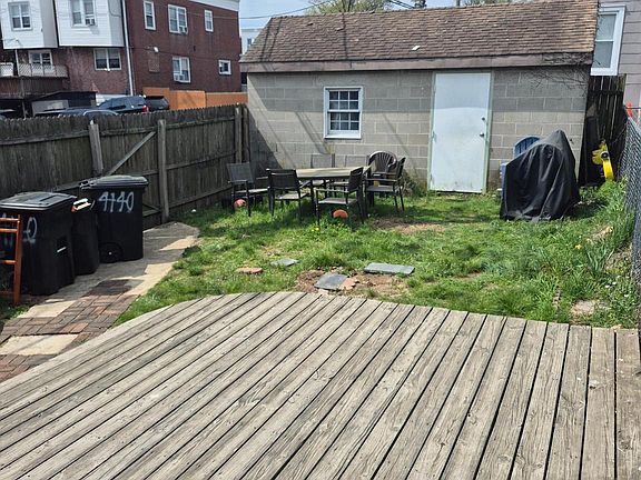 Corner 3 story twin straight thru featuring 3 bedrooms, 2 and 1/2 baths, with detached one car garage. Main level consists of living room, dining room, eat-in kitchen, powder room, and laundry room. There is a front porch and rear deck. Laundry room is on the main level just passed the kitchen. Nice sized backyard. At the end of the backyard is a detached garage that faces Erdrick Street. The 2nd level features 2 bedrooms and 2 full bathrooms. The master bedroom has it's own master bathroom. The 3rd bedroom is on the 3rd level. There is an unfinished basement for additional storage and the utilities. One block east of Frankford Avenue. Close to shopping , schools, and public transportation. Great investment property .