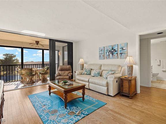 Stunning view of Golf Course, Lake, and Fountains from this 4th floor, THREE Bedroom, TWO Bath UPDATED condo. Updates include: Newly remodeled kitchen with Upscale "LEATHERIZED" GRANITE, designer backsplash, and NEW Stainless-Steel appliances. Hardwood Floors throughout living area. NEW Carpet recently installed in all three bedrooms. Primary and Guest Baths have lovely updates. HURRICANE sliders and windows! New air conditioning unit and hot water heater. MOVE-IN... TURN-KEY! Underground parking. The Landings Yacht Golf and Tennis Clubs is one of the most prestigious communities off McGregor. Enter through the guarded gate onto "lush "park-like" grounds. Amenities included in private membership: A boat-slip (up to 60') at the FULL-SERVICE MARINA located on the Caloosahatchee River. Also enjoy UNLIMITED Golf, Tennis, Pickle-Ball, and Bocce-Ball and fitness Center. Two restaurant's (one newly remodeled). Short drive to beaches, airport, entertainment and shopping.