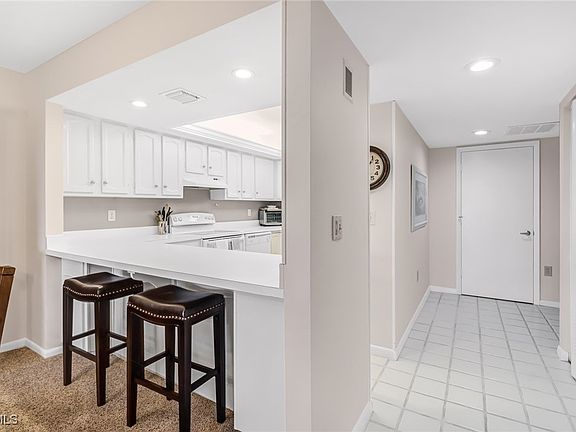 Fairway & Lakefront Panorama — Top-Floor Condo Sanctuary!! Discover a top-floor retreat where every glance reveals rolling fairways and a shimmering lakes beyond. Perched above the tree line, this sunlit condo brings resort-style living straight to your front door. Live where the green meets the blue, yet remain steps from dining, shopping, and neighborhood parks. Whether you’re a golf enthusiast, a nature lover, or someone craving stunning sunsets, this condo checks every box. Completely refreshed bath areas featuring new vanities, contemporary fixtures, and durable quartz counters Sleek hardware and upgraded lighting that complement any décor style. New A/C, hot water heater, circuit breaker, all new stainless kitchen appliances including wine fridge. Hurricane sliders recently added. Newly painted a neutral color, new base boards. Good closet space and under the building parking for major convenience. Steps to community pool. Move-in ready—just add your personal flair This gated waterfront community offers all kinds of activities for everyone, kayaking, boating, golf, tennis, pickle ball, fitness center, lap pool, and community pools, walking and jogging trails. Library, book club, card clubs just to name a few. Within a few miles of area WHITE SAND beaches, theaters, Red Sox and Twins stadiums and international airport. This place has it all.....look no further!