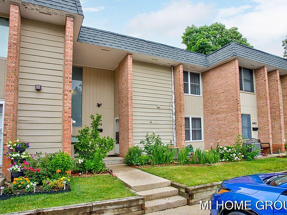 Welcome to this 3-bed, 1.5-bath Condo w/full basement. The open floor plan welcomes you into a spacious living room w/fireplace, updated kitchen with direct access to a private patio. Upstairs, the spacious bedrooms, accompanied by a full bath that has double-sinks a separate shower/toiler room. The partially finished full basement provides extra flexibility. Unit has easy access to the association community pool! Located in the middle of all of the attractions and shopping center of Grand Rapids, and easy access to highways. Dues includes: Lawn/Yard Care; Sewer; Snow Removal; Trash; Water; Other