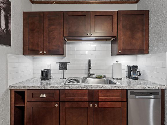 Fenced in yardHardwood floorsStainless steel appliancesEat-in kitchenHexagon tile floorSubway tile