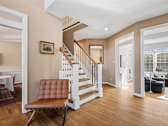 This stunning, expansive brick home boasts an impressive design for entertaining and family living. The chef's kitchen is a culinary dream, featuring high-end appliances, ample counter space, a large island, and a cozy sitting area that invites gatherings. Beautifully refinished hardwood floors throughout the downstairs. All bedrooms have direct access to an en-suite bathroom. The luxurious primary bedroom offers a sitting area, a well-appointed bath, and a closet, which is sure to please. Step outside to discover a lavish saltwater pool off the deck surrounded by beautifully lighted gardens, making it an ideal oasis for relaxation and recreation. With spacious living areas, elegant finishes, and an inviting atmosphere, this home is a true sanctuary in the sought-after Church Point neighborhood that offers walking trails for your enjoyment. Restaurants, shopping, parks, and the beach just around the corner.