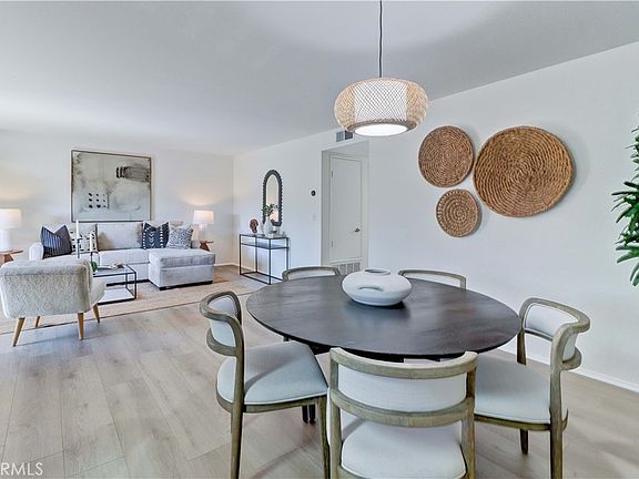 Experience elevated living in this meticulously upgraded top-floor end unit at the Circleview complex in East Long Beach. The open floor plan is designed to impress, featuring a sun-lit living room with elegant laminate flooring and new contemporary lighting that enhances the spacious dining area. The kitchen has been expertly upgraded to include sleek shaker cabinets with soft-close drawers, luxurious granite countertops, a glass tile backsplash, a slide-out pantry, a pull-out spice rack organizer, a lazy Susan, stainless steel appliances, wastebasket cabinet, pendant lighting, and sophisticated tile flooring that completes the space beautifully. The balcony offers city light views, providing an ideal setting for alfresco dining and relaxation. The dual primary suites are generously sized and feature mirrored wardrobe doors, custom closet organizers, new blinds, plush carpeting, full-size en-suite baths, and spectacular mountain views. Additional amenities include inside laundry with newer washer and dryer, linen cabinets, central air, central heat, Nest thermostat, Ring doorbell, a storage closet with shelving, and a brand-new water heater. Two covered parking spaces in the community garage are also included. Circleview is a gated community offering a pool, spa, intercom, elevator, and includes water, trash, and sewer in the monthly HOA dues. One dog and one cat (or two cats) under 25 pounds are welcome. The location offers proximity to freeways, dining, shopping, beaches, gyms, and popular coffee houses. This exceptional home combines elegance, convenience, and prime location near the LB traffic circle. FHA & VA approved community.