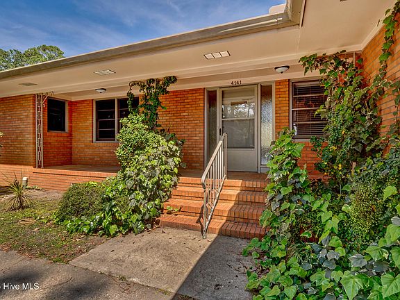 Mid-century 4 Bedroom 2.5 bath brick house with 2 car garage, and a circular driveway sitting on a 2.4-acre lot located in the heart of Wilmington. The foyer greets you with LVP flooring and a geometric bookcase that has a retro built-in beverage cooler in the living room, leading to the den which is separated by a double-sided decorative fireplace, and a beautiful all-season sunroom with a brand-new heating and cooling system. There is a ton of natural light from the awning, crank windows through all rooms of the house providing wide open views of the outdoors, ample ventilation, and even allows you to leave the window open on a cool rainy day. The unique design of the back to nature, and exuberant use of bright colors in the bathrooms, as well as the forest green shag carpet bring back the days of rock & roll. Get ready to pull out those vinyl records, and a pack of licorice. The kitchen has plenty of storage, matching appliances, with an eat-in kitchen, and a large 5-shelf pantry closet. There is new flooring in the kitchen and laundry, and the kitchen has a small hallway access to the washer/dryer connections, a half bath and garage. This gorgeous lot with well-maintained grass, mature trees and a back patio with built in planter boxes allow you to grow your own vegetables or flowers. The home is behind Oleander Dr., Independence mall and restaurants for a groovy night out on the town. Tenants are responsible for all utilities and yard maintenance. No pets and no students. No smoking.
