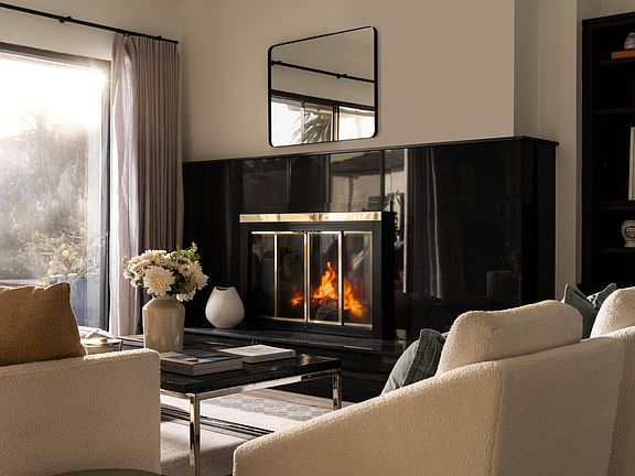 At the far end of the home, the primary bedroom offers ample room to relax and features an enormous walk-in closet, dual bathroom suites, and outdoor access. Three additional en-suite bedrooms and an office provide plenty of space for family or guests. The secluded 1-bedroom guest house offers convenient additional living quarters.