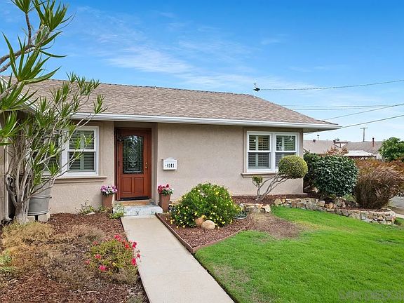 Beautifully updated 3 bedroom, 2 bathroom home, nestled on a cul-de-sac in the highly sought-after Mount Streets neighborhood of West Clairemont. This single-story residence is a testament to care and design with 1,500 square feet of living space on a generous 7,000-square-foot lot. The entryway features a custom cherry wood front door. Beautiful remodeled kitchen. Major system upgrades ensure comfort and efficiency, including a newer roof, furnace, air conditioner, ductwork, and insulation. Other key improvements include newer windows, a water heater, tile floors, beautifully refinished exterior stucco and solar panels. The indoor-outdoor flow with seamless access from the living space to a peaceful backyard garden. This private oasis, complete with a newer patio and awning, is the perfect setting for both quiet relaxation and entertaining guests. The 2 car garage provides plenty of space for vehicles and storage. Minutes from the sun-drenched shores of Pacific Beach and La Jolla, offering beach days and water sports. The vibrant downtown area is within easy reach, providing a wealth of dining, shopping, and cultural experiences. Tecolote Canyon Natural Park is practically in your backyard, with miles of scenic hiking and biking trails. Convenient access to parks, shops, and restaurants. With quick access to both the 805 and 5 freeways, commuting and exploring the rest of the city is a breeze.