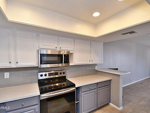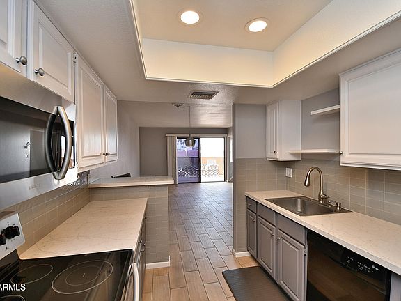 This is the perfect property for 2nd home snowbird, the frequent traveler, with its proximity to the airport, or even the homebody who would enjoy being nestled in an end unit on the top floor of the building with spectacular mountain views & and panoramic Arizona sunsets from the balcony and 2nd bedroom or office.