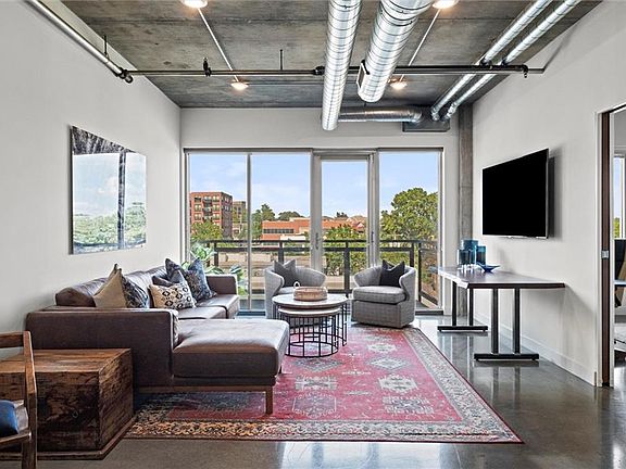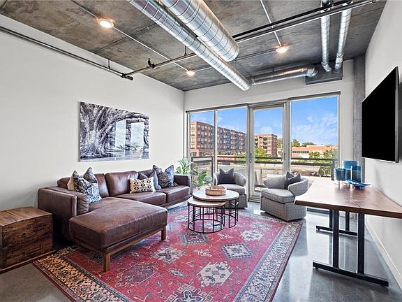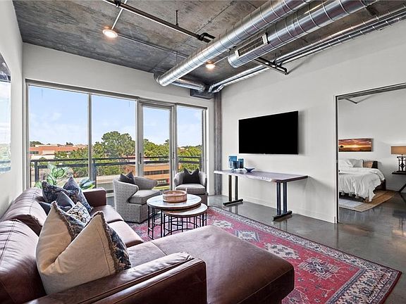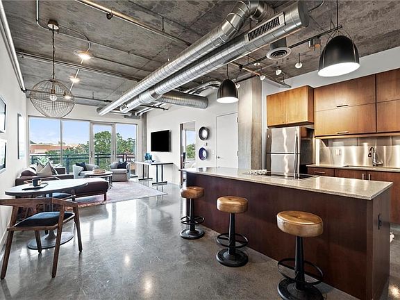 Highlights include polished concrete floors, soaring 10’ ceilings, a spacious kitchen island with solid-surface counters, stainless steel appliances, commercial-grade window systems, and sound-resistant walls. One secured garage parking space is included, adding convenience and peace of mind.