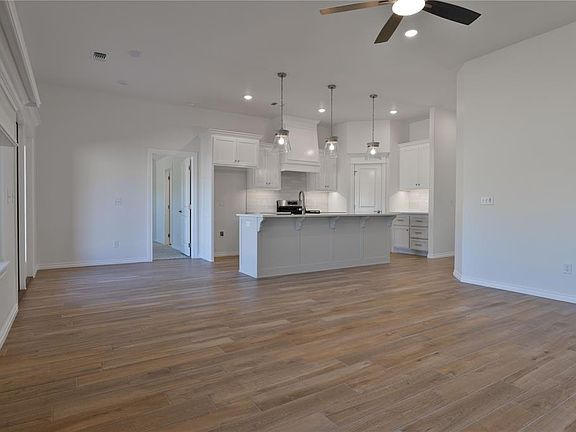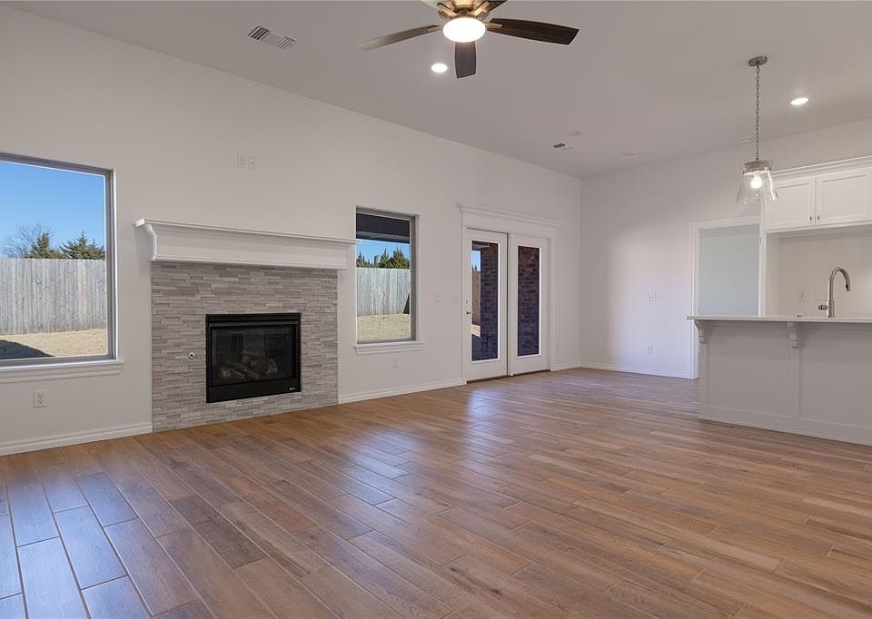 This Dane floor plan features 1,830 Sqft of total living space, which includes 1,700 Sqft of indoor space & 130 Sq Ft of outdoor living. This home offers 4 bedrooms, 2 full bathrooms, covered patios, a utility room, multiple storage opportunities, & a 2 car garage with a storm shelter installed! The living room welcomes a center gas fireplace with our stacked stone surround detail, large windows, a ceiling fan, 4 puck lights, & wood-look tile. The kitchen supports quality cabinets featuring cabinet hardware that's installed throughout, beautiful pendant lighting, 3 CM countertops, a center island, a large corner pantry, & stainless steel appliances. Need more storage? We included a mudbench too! The primary suite has a sloped ceiling detail with a ceiling fan, our cozy carpet finish, & windows. The attached bath features a dual sink vanity, a stand alone tub, a private elongated toilet, a walk-in shower, & a HUGE walk-in closet. Covered outdoor living area offers a wood-burning fireplace, a gas line, & a TV hookup. Other amenities include our healthy home technology, a tankless water heater, R-44 insulation, a whole home air filtration system, & MORE!