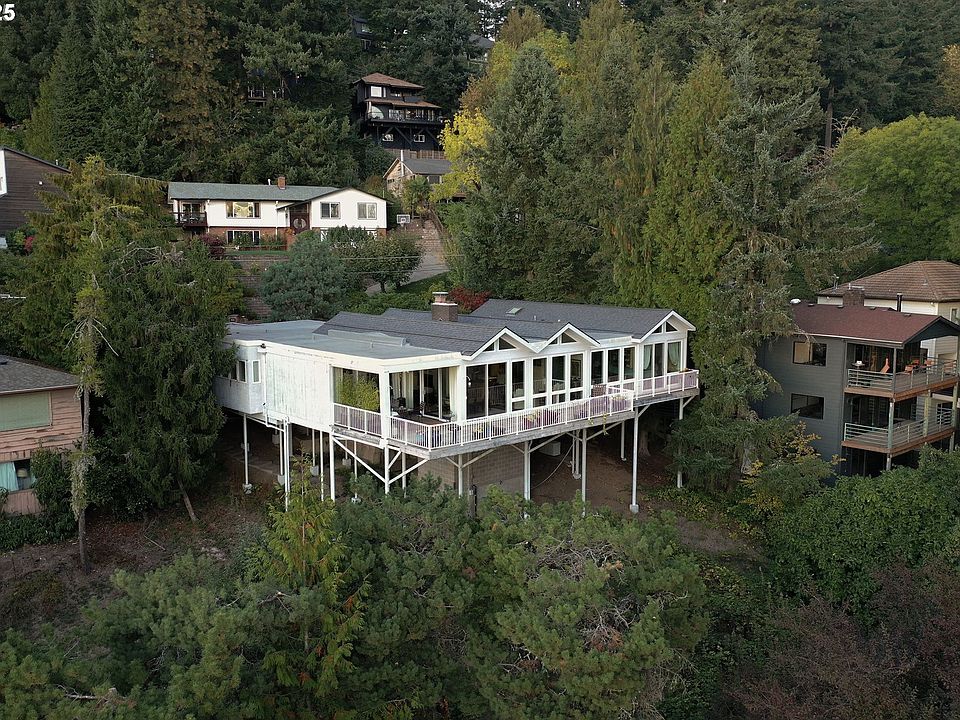 Previously featured in design magazines, this mid-century modern home sits on a generous south-facing lot in one of Portland’s most desired neighborhoods. Offering privacy, architecture, and light in perfect balance. Large windows and a wall of glass doors frame sweeping views that stretch across the hills, capturing both sunrise and sunset in a daily rhythm of color and shadow. Inside, natural light moves through the home like a living element, creating reflections, patterns, and warmth that shift with every season. The main level offers two bedrooms plus a den and office, designed for effortless one-level living. The second bedroom, currently used as a workspace, opens to its own private zen rock garden and separate entrance, perfect for creative focus or quiet retreat. The rest of the home flows seamlessly to an expansive balcony that connects directly to the views, inviting outdoor living and easy entertaining. Set just steps from the popular walking route leading up to Council Crest and the Fairmount Loop, this property also offers potential to expand the lower level or add an ADU. A timeless MCM residence that combines architectural pedigree, natural beauty, and everyday livability.