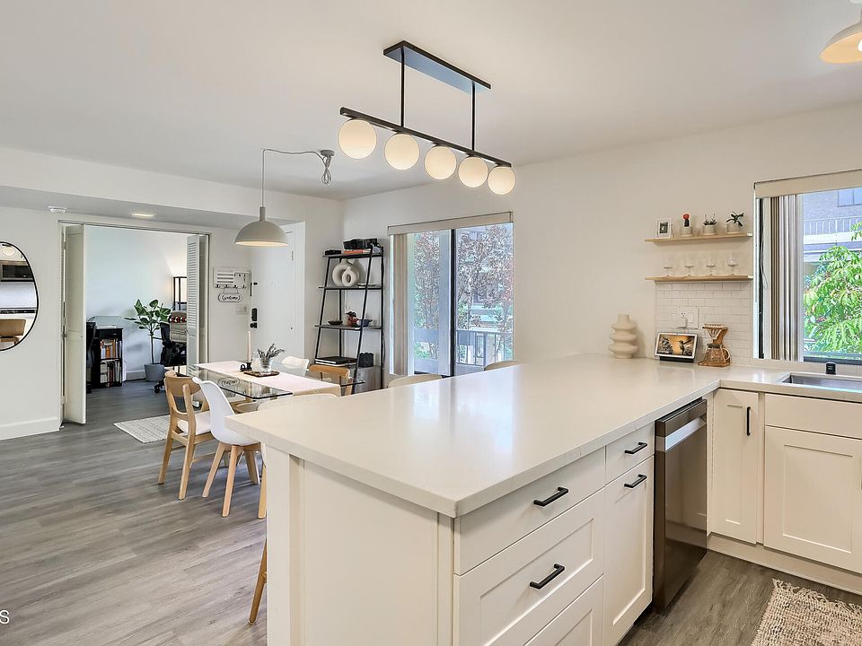This stunning retreat in the Monterey Hills will WOW you from the moment you open the front door. Offering balcony cityscape views, a pool, tennis courts and the most scrumptious kitchen, perhaps you'll work from home and never leave! If you do decide to venture for work or play, this location is considered one of the most convenient LA neighborhoods. It is within close proximity to Downtown LA, Highland Park, Eagle Rock and Pasadena. Located on the third floor of Drake Terrace, this light-filled unit enjoys treetop views of the beautiful interior courtyard garden. The living room and master bedroom offer hillside, pool and city views. In 2020, The unit underwent a thoughtful remodel and is up-to-the latest stunning! The remodel includes gorgeous floors , lighting (one fixture excluded), transformed bathroom and the heart of the home, a sophisticated kitchen which increases entertainment space exponentially. There are in-unit laundry hook ups, plus community laundry in the building. There are two car (tandem) subterranean parking spaces. 313 is a single level unit + zero stairs is an option, as there is an elevator route which goes from the parking level all the way to the third-floor. Truly a must see!