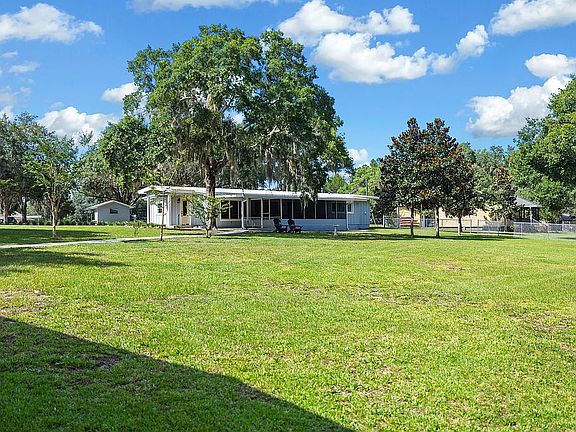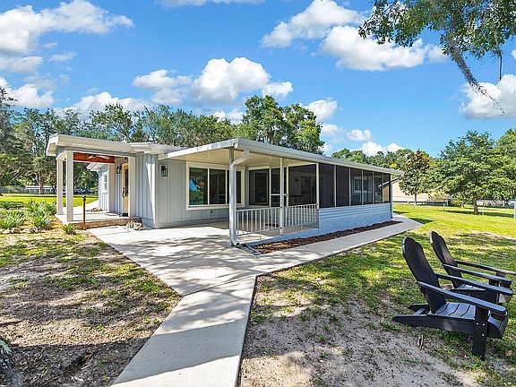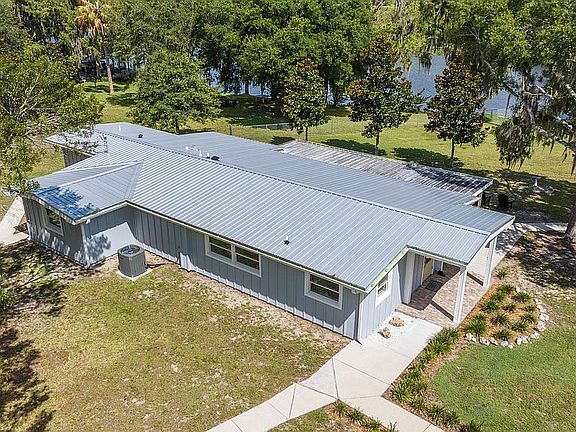 This is one of the nicest riverfront properties you will find. The expansive lawns, mature trees and panoramic view will fill you with serenity and awe. This move-in ready, ranch style river cottage is a great choice for those tired of the huge house and keeping up with the Joneses. Who dream of leaving the rat race and downsize or are ready to retire and age in place. With simple clean lines, no stairs to traverse, sidewalks throughout the property and linear layout making it easier to go from one space to another. The one story, low pitch roof design with vaulted ceilings lowers maintenance requirements and costs. No wasted space to heat and cool. This home may also appeal to younger buyers who love a large yard and value time spent outdoors with family boating, fishing or kayaking. This is Prime Riverfront Property. 199.47 ft on the main channel of the Withlacoochee River, beginning of Lake Rousseau. No Flooding (no flood insurance required). Deep water. Dock. Seawall. Opening in seawall to launch a kayak or small boat. Main home is 1,768 sq ft. CB/wood structure with concrete slab foundation. Well and septic. Single car carport with metal roof and enclosed storage/work area. Long asphalt drive with large parking pad. Fenced. Landscaping. Quiet, dead-end street. Short walking distance to the Goldendale boat ramp (channel marker 175) for convenient boat launching. Home renovated in 2022-2023. Porcelain tiled front porch. Custom 1x4 Tongue and Groove Southern red cedar porch ceiling. New metal roof with Low E radiant barrier. Aluminum facia, soffit, gutters and downspouts. Board and Batten Hardie board siding. Screened Lanai and covered patio area. Exterior light fixtures, Exterior electrical outlets, exterior faucets. 3- ton Trane heat pump. Updated electric, plumbing. New electrical panel box (2024). New large utility/laundry room with custom wood cabinets, large utility sink, New hot water tank. Extra Whirlpool French door refrigerator. Double pane, low E windows with transferable lifetime limited warranty. Custom wood kitchen cabinets. Double pull- out Trash/recycle bin. Rev-a shelf pull out. Stainless steel KitchenAid appliances. Dual fuel range, vent hood vented to outside, refrigerator, dishwasher, Sub Zero beverage center. Kraus stainless steel farm sink, Delta kitchen faucet, granite counter tops, walk in pantry with custom wood shelving. Master bath with custom wood his/her vanities. Delta lavatory fixtures. Quartz vanity tops. Water closet. Porcelain tile floors and shower walls and ceiling. Custom Glass shower door with Enduro Shield. Bead board and wood beams in living room ceiling. LED ceiling lighting, Hunter fans. 6 -inch base boards with shoe molding. Tarkett LV plank flooring. Walk in master closet and large bedroom closets with wood rods and shelving. Private 1/2 bath in one of the secondary bedrooms. There is an additional 600 sq ft CB building with metal roof that has limitless possibilities. Man Cave, Mother-in-law cottage, Guest cottage, workshop or rental. Has electric and water and permitted for septic. It is 2.8 miles to Dunnellon by car. 10 minutes by boat to enjoy a waterfront meal at the Blue Gator restaurant on the Withlacoochee or 15 minutes to Swampy's Bar and Grille on the Rainbow River. The Rainbow River is the "tourist" area where tubers, kayakers, paddle boarders, boaters and swimmers converge to enjoy the clear water. 28 miles to Ocala, "The Horse Capital of the World." 22 miles to the World Equestrian Center (WEC), where world class equestrian events are held. 90 miles to Tampa for airline travel. PROPERTY SELLING AS IS 2.5% Buyer's Agent Fee