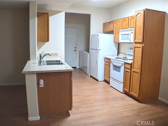 This lovely ground floor condo in The Reserves at Madison park has an attached 1-car garage with direct access into the unit plus an assigned carport. Interior has wood laminate flooring throughout, ample laundry room with washer and dryer, split floorplan with spacious living room, dining area, and built-in computer desk/work area off the kitchen. Living room boasts a cozy fireplace and opens to a covered patio. Indoor utility/storage room. Walk-in closets in both bedrooms, ceiling fan in primary bedroom, new faucets and toilets in both bathrooms. Community amenities include pool, spa, clubhouse, picnic area, playground, racquetball court and fitness center. Owner pays for HOA fees (including trash removal), tenant pays for electric, gas, water, sewer, cable/internet. Conveniently located, near freeways, shopping, dining and entertainment.