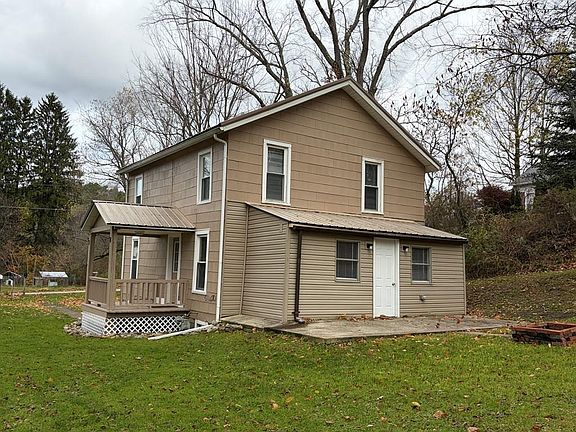 Recently surveyed, this three bedroom, two bath, 1,500 sq ft, two story home is move in ready with many recent improvements including metal roof in 2023, exterior and interior paint, new flooring in much of the home, hot water tank, well pump and newer windows and furnace (2010). The large kitchen has plenty of room for a dining table, the first floor laundry is complete with washer and dryer, 3/4 bath on first floor and bonus room off the nicely sized living room which could offer a first floor bedroom space. There is a add on at the rear of the home for storage or mudroom use. The second level offers a full hall bath, three nicely sized bedrooms and views of the level lot. The low taxes are a plus, as well as, the front or side porches for relaxing. Seller accepting only conventional or cash offers at this time. Taxes are $498.90.