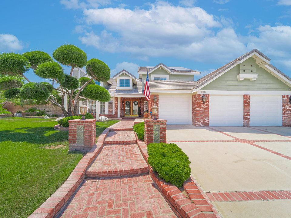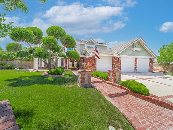 Entertainers Dream Home with Your Own Private Oasis on a Quiet Cul-de Sac. Offering 4 large bedrooms and 3 full bathrooms, with a bedroom and bath downstairs. There is travertine, hardwood flooring, and upgrades throughout, with no expenses spared. The kitchen has beautiful granite counters and with custom cabinets and a walk in pantry. There is a custom bar and wine fridge in the formal dining area. The primary bedroom has a retreat with a fireplace and the bathroom has heated flooring, walk-in shower, and a freestanding tub, both with intricate faucets. The backyard is a dream with a custom pool and spa that has a slide and waterfall. There is a built in BBQ and fridge under a beautiful gazebo. A covered patio extends the length of the home, including a tandem garage with a covered patio work space. There is lush landscape with a pond making for the perfect serine backyard. The home is energy efficient with Tesla solar panels, solar for the pool, and a tankless water heater!