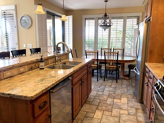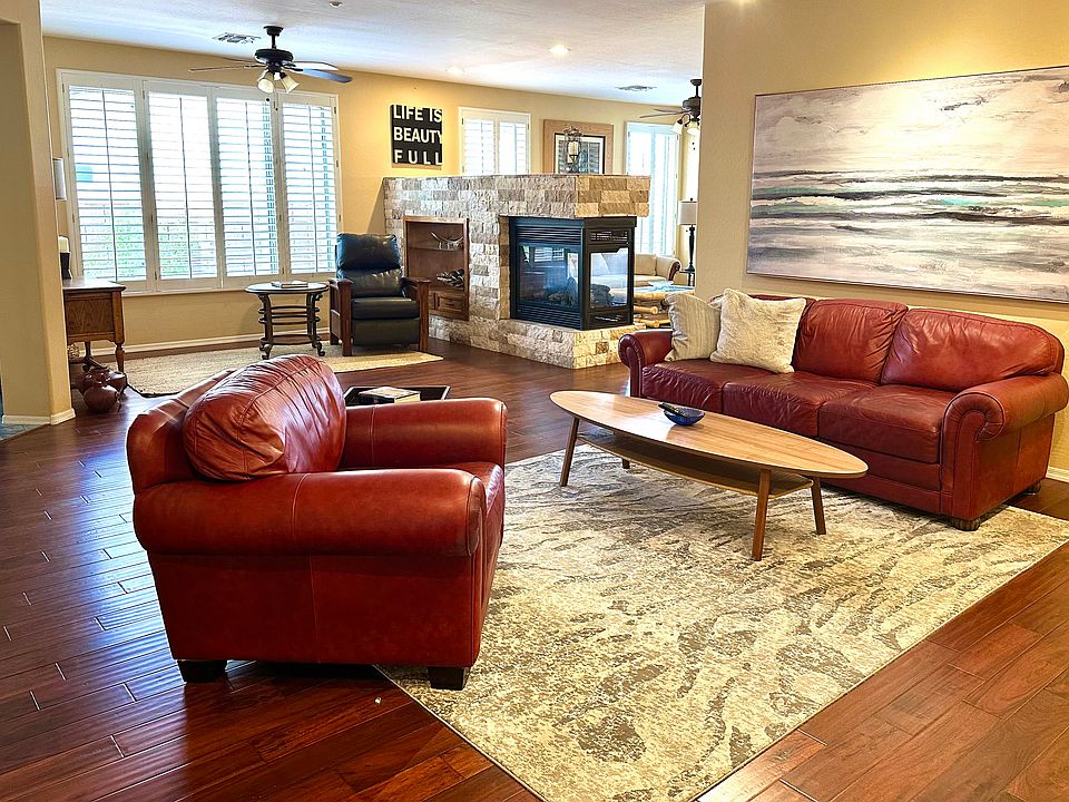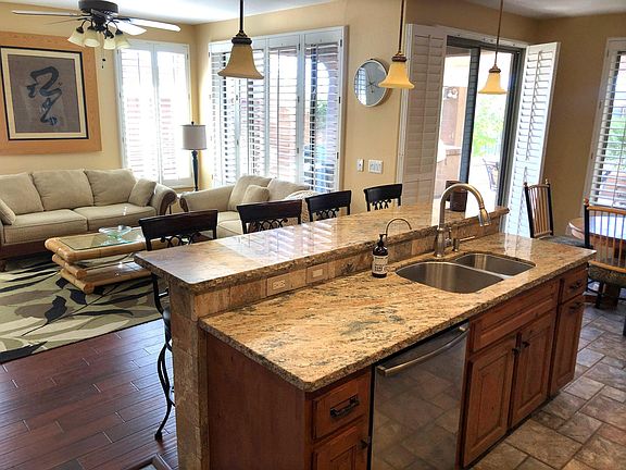 Now Available! This gorgeous fully furnished (2 Bedroom / 2 Bathroom + Den) home is located in the peaceful 24 hour guard gated Anthem Country Club. Backing up to an open area with beautiful sunset views, the backyard has a built in gas grill, pergola, artificial grass and is furnished with dining set and lounge chairs. The home interior is stocked with cookware, dishes, bath towels, linens, comforters, pillows, etc. Both a new washer & dryer and new water softener have been installed. The entire house has been upgraded with hardwood and tile flooring, a new HVAC unit, alder cabinets, wood plantain shutters, gas fire-place, granite countertops, Bosch & Frigidaire kitchen appliances, stone-work, water filtration, outdoor irrigation system and much more. The exterior is newly painted and there is a 2 car attached garage with lots of built in storage. Ready to move in! Long term lease preferred and includes full club access. (If under 6 months, the cost is $4,500/month). Video walk through available upon request.