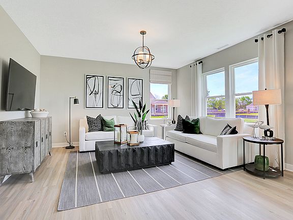 Montgomery Woods is a community bringing new single-family homes for sale, coming soon to Indianapolis, IN. The community is located near ample opportunities for outdoor recreation, including Southeastway Park and Dakota Landing Golf Course, perfect for nature lovers and golf enthusiasts. The first level of the Hampshire offers a 5th bedroom/flex room as an ideal space for overnight stays. The Great Room, kitchen and dining room can also be found on the first floor, arranged in an expansive floorplan. Upstairs, four bedrooms await, plus a loft offering additional living space for everyone. A 3 car garage adds extra storage. *Photos/Tour of model may show features not selected in home.