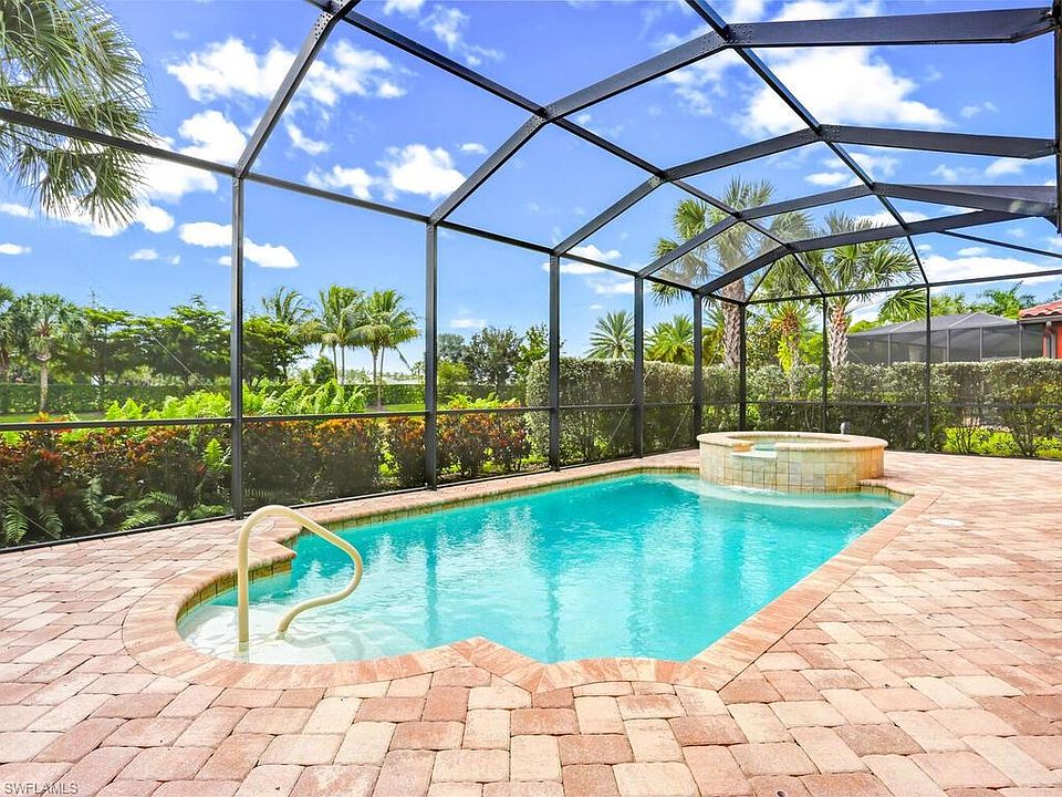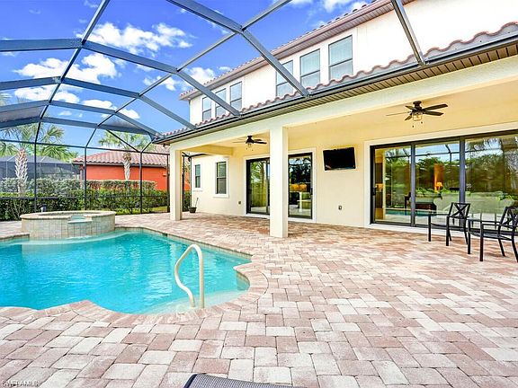 You'll love this stunning WCI 2-story southern exposure lake view pool home in the highly desirable family neighborhood of Raffia Preserve. This home features 5 bedrooms plus a den, 3.5 bathrooms and a 3 car garage giving you 4,073 sq ft of generous open space to move about. Upon entering, you are drawn to the wide open floor plan, high ceilings and picturesque view of your outdoor oasis fully equipped with a pool, spa and plenty of space for entertaining. Your gourmet kitchen is nicely appointed with upgraded stainless steel appliances, granite countertops with plenty of prep area, large counter-island, 42" cabinets and 2 large walk in pantries. This home boasts a large family room and dining room, 2 private offices and a large upstairs bonus room. Some of the amazing features are upgraded flooring, impact resistant glass on all doors and windows, upgraded wood staircases, crown molding throughout, upgraded electric package, entertainment package, etc. Situated in a friendly gated community in the North Naples award-winning school system, Raffia Preserve amenities include a resort-style pool with lap lanes, a playground, basketball court, fitness center and clubroom.