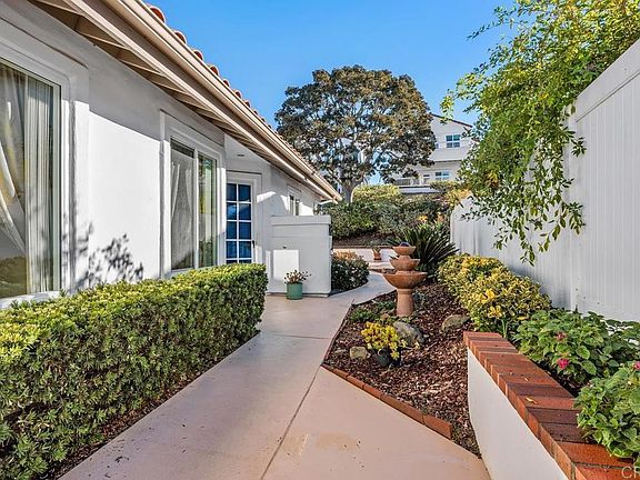 "Pride of Ownership" for this Popular St. Tropez model with 1,800 Sq. ft of Single-Story Living! 1st time on the market in 22 years, this Exceptionally Well cared for Home is spotless throughout! The home shows Incredibly Light & Bright and Boasts a Lovely Sun-filled Atrium, ideal for growing your own vegetables with a raised garden bed! The separate Den/Office provides various options as a comfortable lounge area for TV viewing, Workstation or exercise room! The secondary bedroom is perfect for guests, and the Primary/master bedroom is Oversized with dramatic vaulted ceilings, Wood Beam, walk in closet and dual vanities in the bathroom. The Living room and Dining room offer ample space with and open concept and are seamlessly connect to the adjacent kitchen! Outside you have a 13 foot wide newly installed Aluma wood Patio cover for shade during those hot summer days, and an uncovered sitting area that is ideal for an outdoor sectional sofa and fire pit! All this a much more in the Iconic 55+ Resort Like Community of Ocean Hills Country Club!