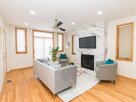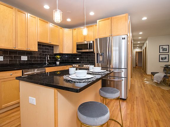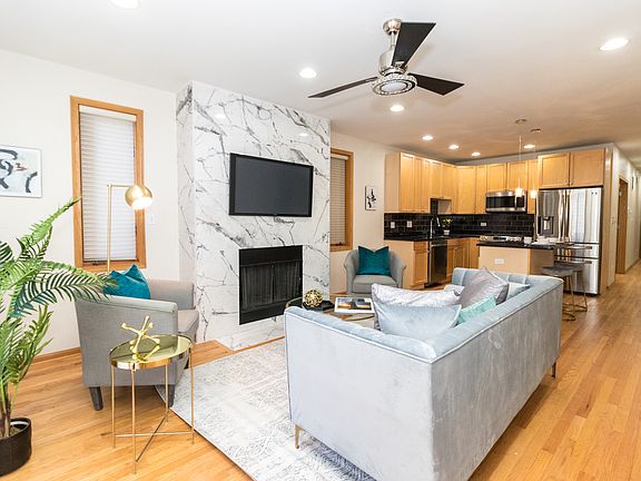 Stunning and Spacious 5 bed/3 Bath DUPLEX-DOWN Condo located in the heart of BRONZEVILLE. This home offers so much. The open concept on the main floor offers living room, dining room and kitchen space with hardwood floors throughout the entire space. The kitchen has 42" cabinets, granite countertops, all new Samsung appliances, new backsplash and an island for additional counter/eating space. The sunlit living room has a statement piece, granite surround fireplace, that is both gas and wood-burning. The first floor/main level encompasses 3 bedrooms, with one being able to be used as an office with french doors and a Master Suite with master bathroom that was recently updated and boasts a Whirlpool tub, separate shower and a double vanity. This Master Suite also has an attached large private balcony. To emphasize again, this unit is HUGE and has fresh paint throughout, new light fixtures and new carpet in the basement. This home is perfect for entertaining with a separate dining space on the main level and complete open space on the lower-level including a granite wet bar area. This lower level with high ceilings can be used as additional living room space, game room, additional dining area or even in-law living situation with a front and back door on this level and 2 more bedrooms with another bathroom with a separate tub and shower. Bonuses are that there is large closets and ample storage in this home and additional storage in the building, plus dedicated space for THREE tandem parking spots. All of this in the home and then located in this prime historical area of Bronzeville where you have public transportation (Green and Red Line), can easily access either I-94 or Lake Shore Drive, near White Sox Park, restaurants, 39th St. Beach, and Mariano's. Hurry and request your private showing today, as this home will not last!