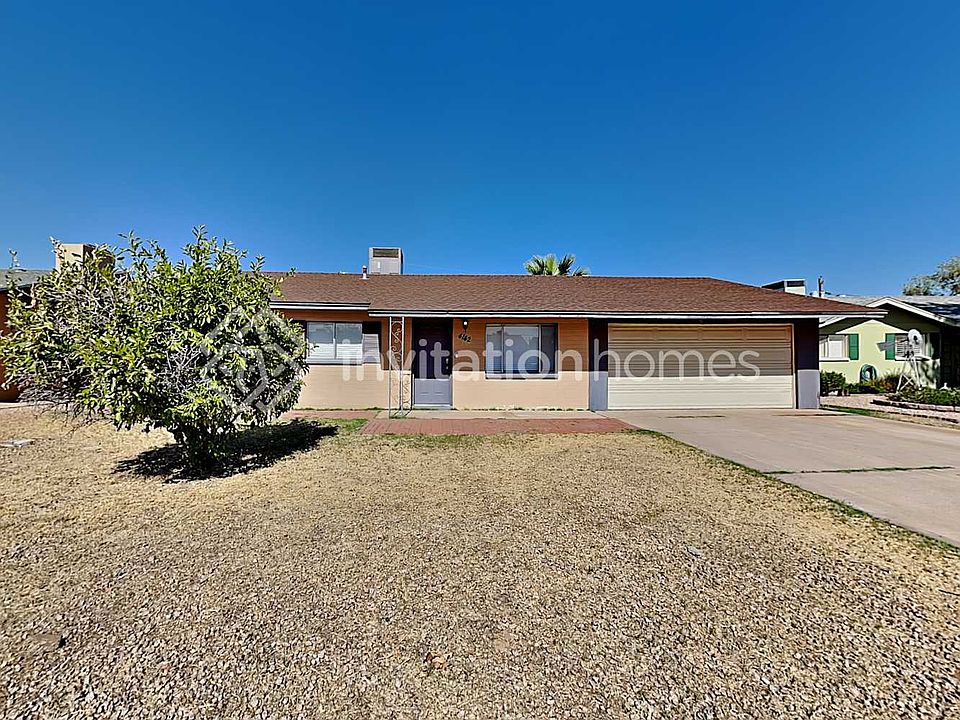 Home Features and Amenities: Air Conditioning, Fenced Yard, Garage, Granite Countertops, Long Lease Terms, Patio, Pet Friendly, Pool, Primary Bedroom on Main, Single Story House, Smart Home, Stainless Steel Appliances, Tile, Walk in Closet, W/D Hookups, and professionally managed by Invitation Homes.